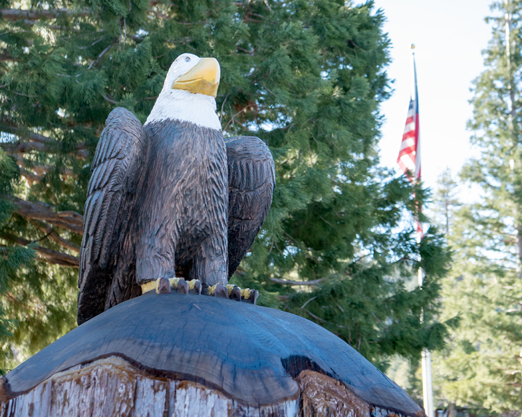 Idypark was dedicated in honor of veterans and first responders on Memorial Day weekend in 2018. At the center of the park, a 50-foot flagpole holds a 18’x 12′ US flag that is visible from around the town. Majestic sequoias, sculptures by local artists, and serene walking paths make Idypark an important part of the community, and a peaceful retreat.